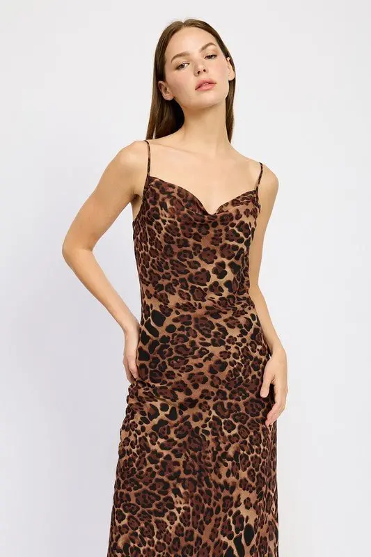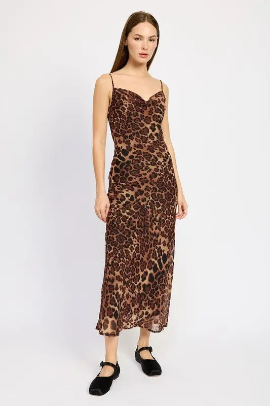 Animal print slip maxi dress. Adjustable straps. Lined, not sheer.