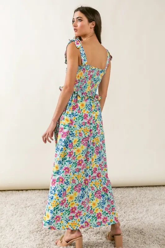 This floral ruffle trim dress is perfect for summer occasions. It features a charming print and playful ruffle detailing, with a flattering smocked bodice for comfort. Dress it up with sandals or wedges for a chic daytime look.