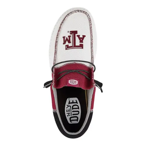 The Men's Wally Tri now screams school spirit! Show your support for the Texas A&M Aggies in style with a unique design featuring the iconic logo and bold team colors. Made with signature HEYDUDE comfort, lightweight materials, and a slip-on design, these are perfect for all-day wear to bring you and your crew from the tailgate to the game.