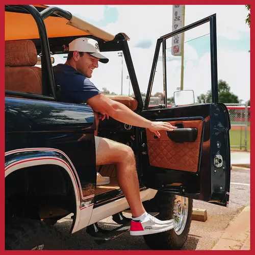 Gooooooooo dawgs, sic ‘em! Take it from the tailgate to the Dawg Walk to Sanford Stadium in vintage-inspired slip ons stitched with Athens pride. Bulldog red and white. UGA details. And gameday-ready comfort. These are for the real ones who know what’s coming down the track.