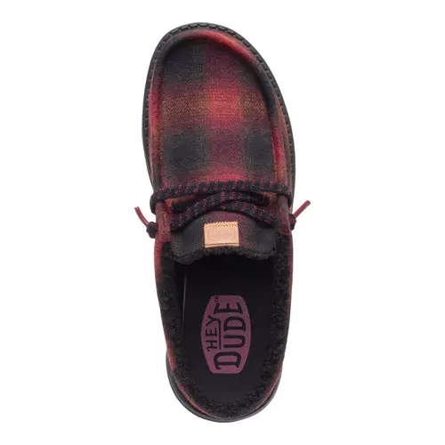 HEYDUDES Wally Slip Cozy Plaid – Red Plaid / Black