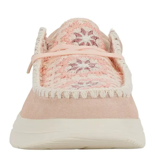 HEYDUDES Wendy Comf Suede Crochet – Pale Pink/Multi